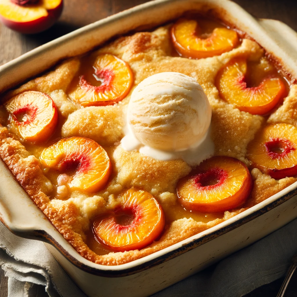 Peach cobbler is a classic Southern dessert made with juicy, sweet peaches topped with a biscuit-like or cake-like crust.